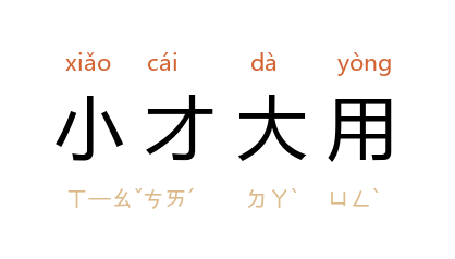 才:人才;用:任用。以小才而任大事。指才能和担当的职务不相称。