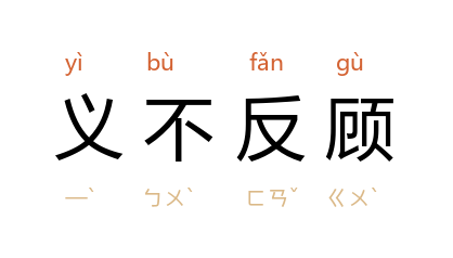 反顾:回头看。①义:通“议”,考虑,打主意,选择。决策时连回头看的功夫都没有。形容毫不犹豫,极为迅速地作出某项决定。亦作“计不反顾”。②为了正义只能奋勇向前,不犹豫回顾。亦作“义无反顾”。