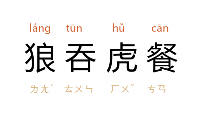 出处清·彭养鸥《黑籍冤魂》第23回:“他们把饭煮熟,菜烧好,聚在一起,就在村前打麦场上,狼吞虎餐的吃。”