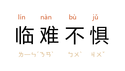 临:到;难:灾难;惧:恐惧。遇到危难,一点也不惧怕。