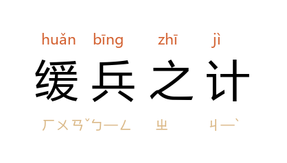 缓:延缓。指作战时延缓对方进兵的计策。借指使事态暂时缓和同时积极设法应付的策略。