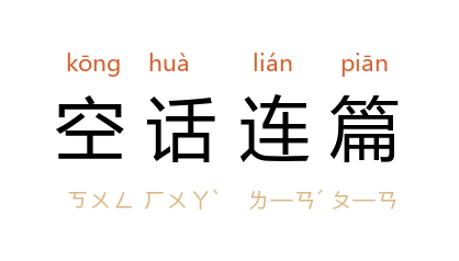连篇:整篇。整篇都是空话,缺乏具体内容。