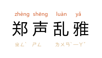郑声:春秋时郑国的音乐,靡靡之音;雅:庄严的雅乐。郑国淫靡的声乐扰乱了庄严的雅乐。比喻以邪侵正。