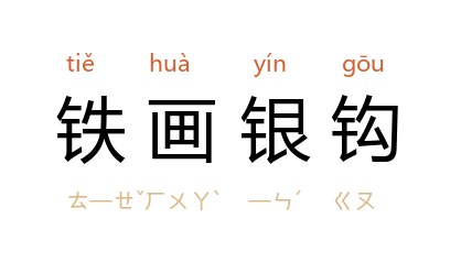 出处唐 欧阳洵《用笔论》:“徘徊俯仰,容与风流,刚则铁画,媚若银钩。”
