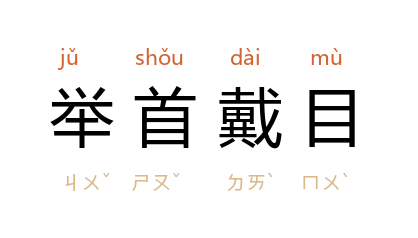 举:抬起;戴目:仰视的样子。形容望着远处而有所期待或殷切期待。