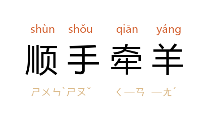 顺:方便。指顺手把羊牵走。比喻顺便利用可乘之机施展手法或手腕。