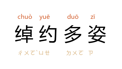 出处唐 蒋防《霍小玉传》:“年可四十余,绰约多姿,谈笑甚媚。”