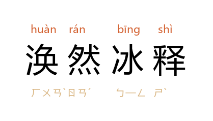 涣然:消散的样子;释:消散、解除。指像冰块溶化流散一样。比喻误会、疑虑、隔阂等完全消除。