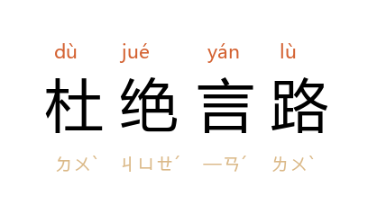 杜绝:断绝,阻塞;言路:进言之路。堵塞和断绝一切进言之路,指不纳谏言。