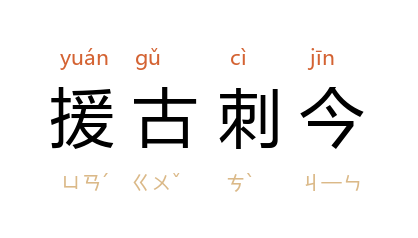 出处明·杨慎《升庵诗话》卷六:“援古刺今,箴戒得失,谓之箴。”《天讨·豕韦之裔〈普告汉人〉》:“述怀咏史,不过词人之习态,不可以为援古刺今。”