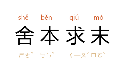 舍:舍弃;求:追求。抛弃根本的、主要的,而去追求枝节的、次要的。比喻不抓根本环节,而只在枝节问题上下功夫。