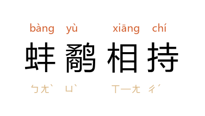 出处《战国策 燕策二》:“今者臣来,过易水,蚌方出曝,而鹬啄其肉,蚌合而钳其喙。鹬曰:‘今日不雨,明日不雨,即有死蚌。’蚌亦谓鹬曰:‘今日不出,明日不出,即有死鹬。’两者不肯相舍,渔翁得而并禽之。”