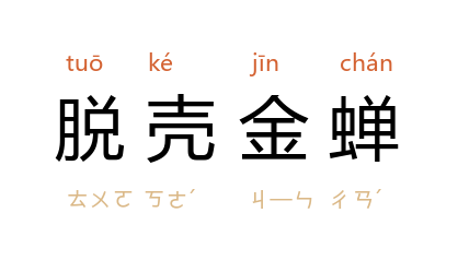 比喻用计谋脱身。元·关汉卿《谢天香》第二折:”便使尽些伎俩,千愁断我肚肠,觅不的个脱壳金蝉这一个谎。”详见“金蝉脱壳”。