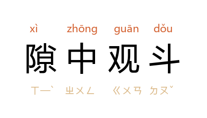 隙:缝隙。从门缝中观看争斗。比喻看不到整个情况。