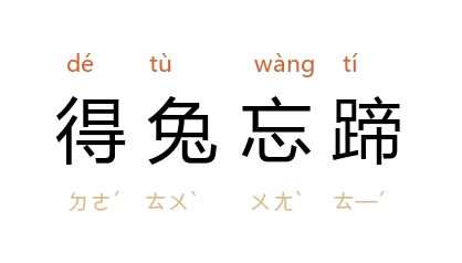 出处语出《庄子·外物》:“蹄者所以在兔,得兔而忘蹄。”