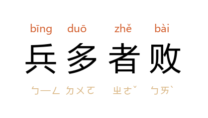 出处清 赵翼《陔馀丛考》:“古来用兵,往往兵多者败,差兵过多则号令不齐,气势不贯,必不能有臂指相使之用。”