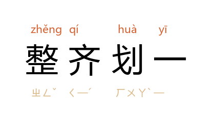 整齐:有条理,不凌乱;划一:一致,一样。指有条有理,全都一样。