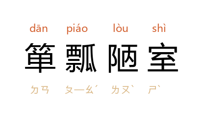 箪:古代盛饭的圆形竹器;瓢:古代装水的小容器。一箪食物,一瓢汤水。形容生活简朴,安贫乐道。