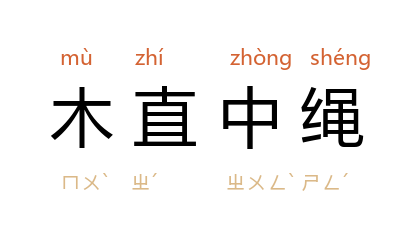 中:符合、合乎;绳:木匠用以取直,浸满墨汁的线绳。木材直得合乎拉直的墨线。