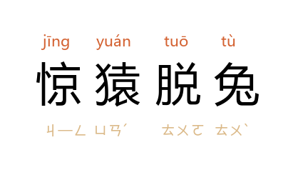 如受惊的猿猴、脱逃的兔子。形容迅速奔逃。