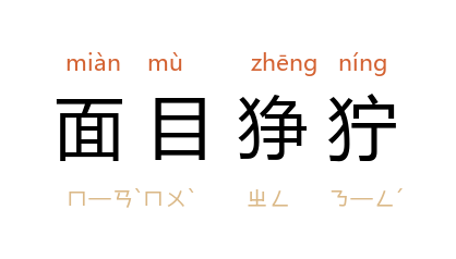 狰狞:面目凶恶。形容面目凶狠可怕。亦作“面貌狰狞”、“狰狞面目”。