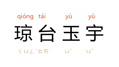 琼:美玉;宇:屋檐,引申为楼房。指神话故事中月宫亭台楼阁。形容华丽堂皇的建筑物。