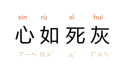 死灰:已冷却的灰烬。原指心境淡漠,毫无情感。现也形容意志消沉,态度冷漠到极点。