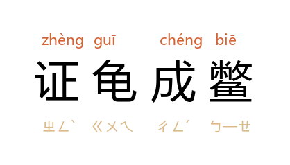 出处宋苏轼《东坡志林 贾氏五不可》:“晋武帝欲为太子娶妇。卫瓘曰:‘贾氏有五不可:青、黑、短、妒而无子。’竟为群臣所誉娶之,竟以亡晋。……俚语曰‘证龟成鳖’,此未足怪也。以此观之、当云‘证龟成蛇’。……”