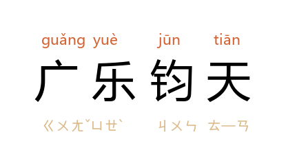广乐:优美而雄壮的乐曲;钧天:古代神话传说指天的中央。指天上的音乐,仙乐。后形容优美雄壮的乐曲。