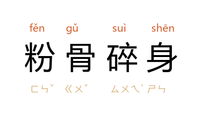 出处唐 蒋防《霍小玉传》:“平生志愿,今日获从,粉骨碎身,誓不相舍。”明 凌濛初《初刻拍案惊奇》卷二十:“兰孙道:‘相公、夫人正是重生父母,虽粉骨碎身,无可报答。’”
