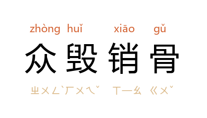 指众多的毁谤,可以销熔人的骨骼。比喻谗言多可以混淆是非。