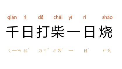 比喻持久奋斗而一旦成功。也比喻平时积攒,一朝花费。同“千日斫柴一日烧”。