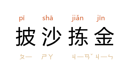 例子披沙拣金,所获甚尠。(清 陶曾佑《中国文学之概观》)