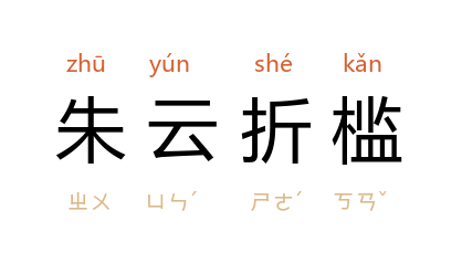 朱云:汉代人名。折槛:折断栏杆。朱云折断了栏杆。形容敢于直言进谏。