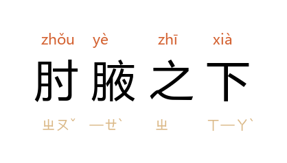 肘腋:胳膊肘与胳肢窝。比喻切近的地方。