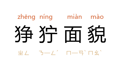 狰狞:样子凶恶。形容面貌凶恶可怕。