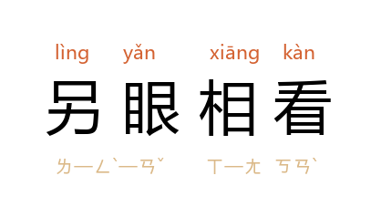 用另一种不同于一般的眼光看待。形容对某个人特别重视;不同于寻常。
