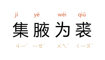 出处清·蒲松龄《聊斋志异·聊斋自志》:“集腋为裘,妄续《幽冥之录》。”