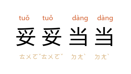 注音ㄊㄨㄛˇ ㄊㄨㄛˇ ㄉㄤˋ ㄉㄤˋ