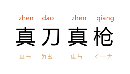 ①真实的刀枪。②比喻毫不作假,实实在在。