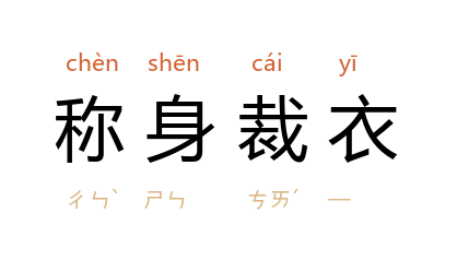 称:适合。按照身材来裁剪衣服。比喻按照实际情况办事。
