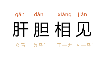 肝胆:比喻真诚的心。比喻对人忠诚,以真心相待。