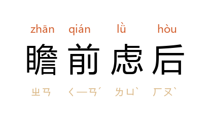瞻:向前望。兼顾前后。形容顾虑太多,犹豫不决。