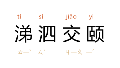 眼泪鼻涕流满脸颊。形容哀恸哭泣。