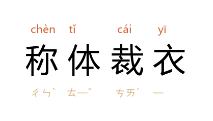 称:适合。按照身材来裁剪衣服。比喻按照实际情况办事。