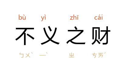 不义:不正当;不合理。不应该得到的或以不正当的手段获得的钱财。