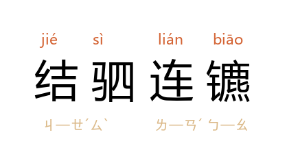 驷:套着四匹马的车;镳:马勒。高车骏马连接成队。形容高贵显赫。