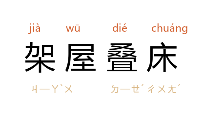 出处明·焦竑《焦氏笔乘续集·俗书之误》:“架屋叠床,触目皆是。”