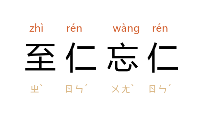 至仁:最大的仁德。指仁到了极点反而忘掉了仁。比喻事物到达顶点容易被忽略掉。