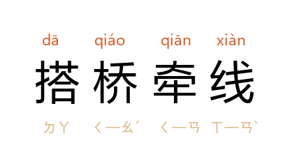 搭桥:架设桥梁;牵线:指从中介绍。比喻为促成某事而做中介工作。
